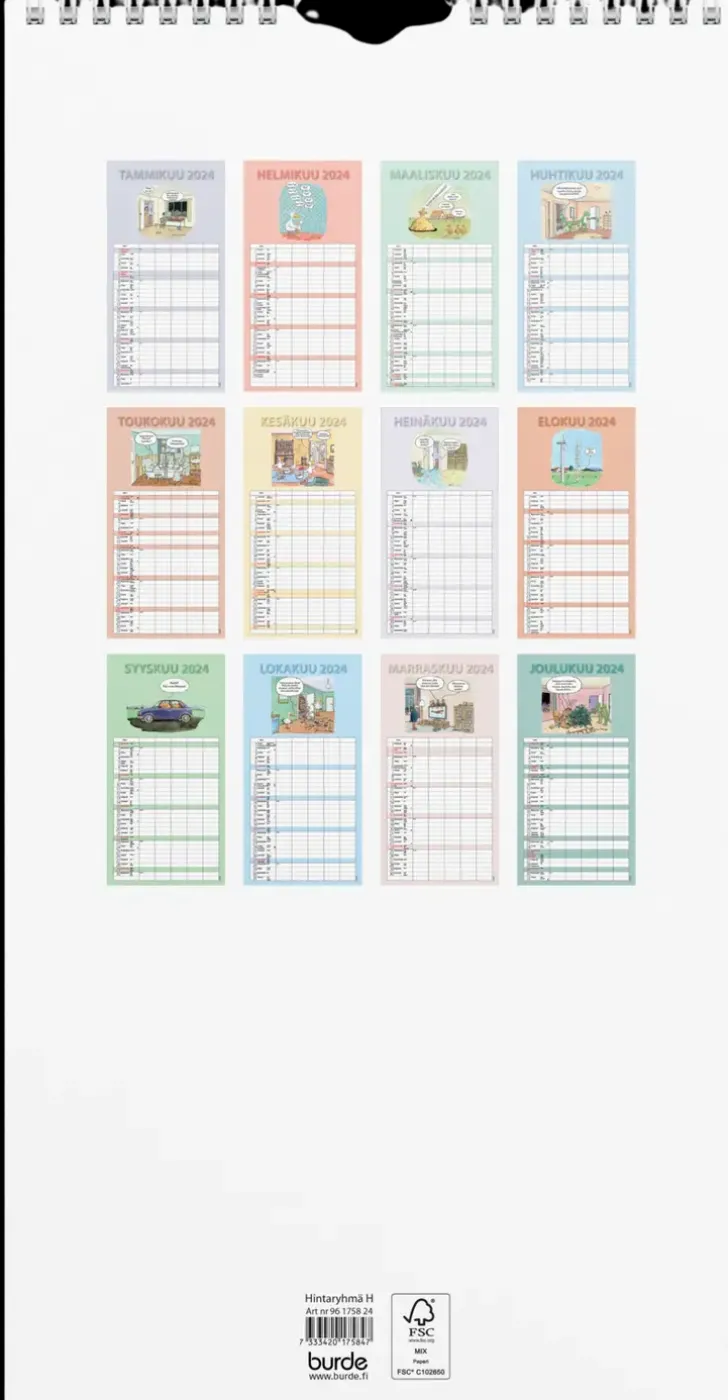 Burde Perhekalenteri 2024 Perhekalenteri Hauska Paperitaskulla
