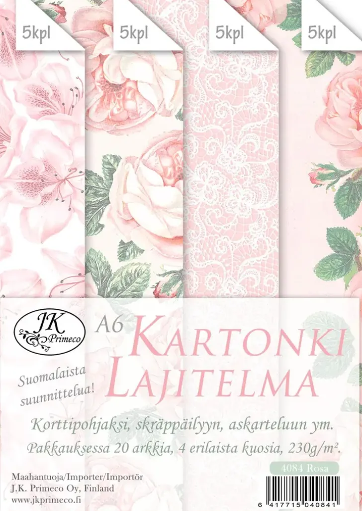 Lehtiössä On Yhteensä 20Kpl A6-Kokoista Arkkia, 4 Eri Kuosilla. Sopii Mm. Korttiaskarteluun, Koristeluun Ja Skräppäilyyn.