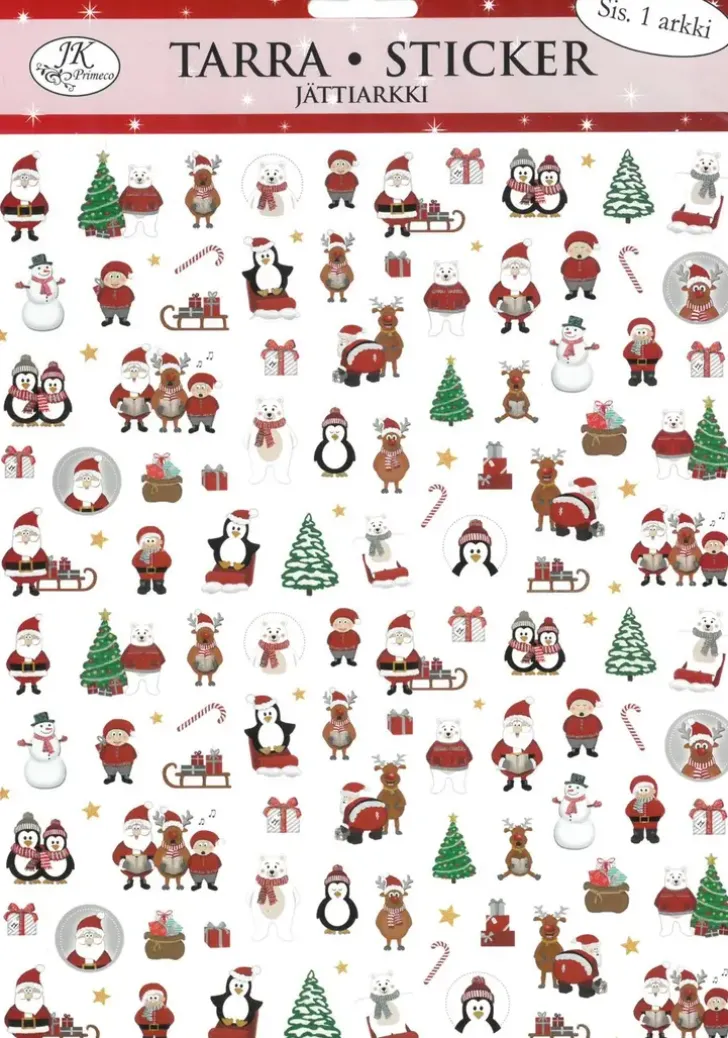 Jättitarrat Askarteluun Ja Koristeluun. Pakkaus Sisältää Yhden Arkin Erilaisia Paperisia Tarroja. Arkin Koko On N. 25Cm X 20,5Cm.