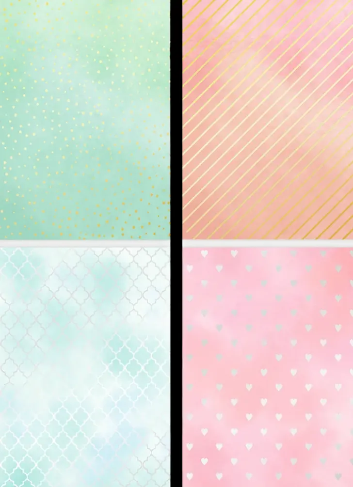 Kartonkilajitelma Askarteluun Ja Koristeluun. Pakkaus Sisältää Yhteensä 20 Arkkia A6-Kokoista Kuvioitua Kartonkia, Joissa On Neljä Eri Kuosia Foliopainatuksella. Yhtä Kuosia On 5 Kappaletta Per Paketti. Kahdessa Kuosissa On Kultafoliopainatus Ja Kahdessa Kuosissa On Hopeafoliopainatus. Kartongin Vahvuus On 230G/M².