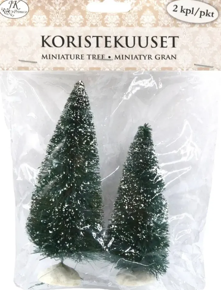 Koristekuusi Koristeluun Ja Minimaailman Rakentamiseen. Pakkaus Sisältää Kaksi Kappaletta Muovisia Koristekuusia, Joiden Korkeus On Noin 12Cm Ja 15Cm.