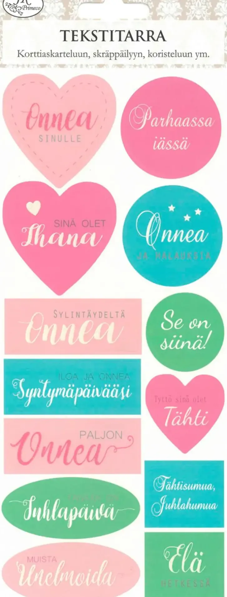 J.K. Primeco Tekstitarra Onnittelut Pastelli 1Ark/Pkt