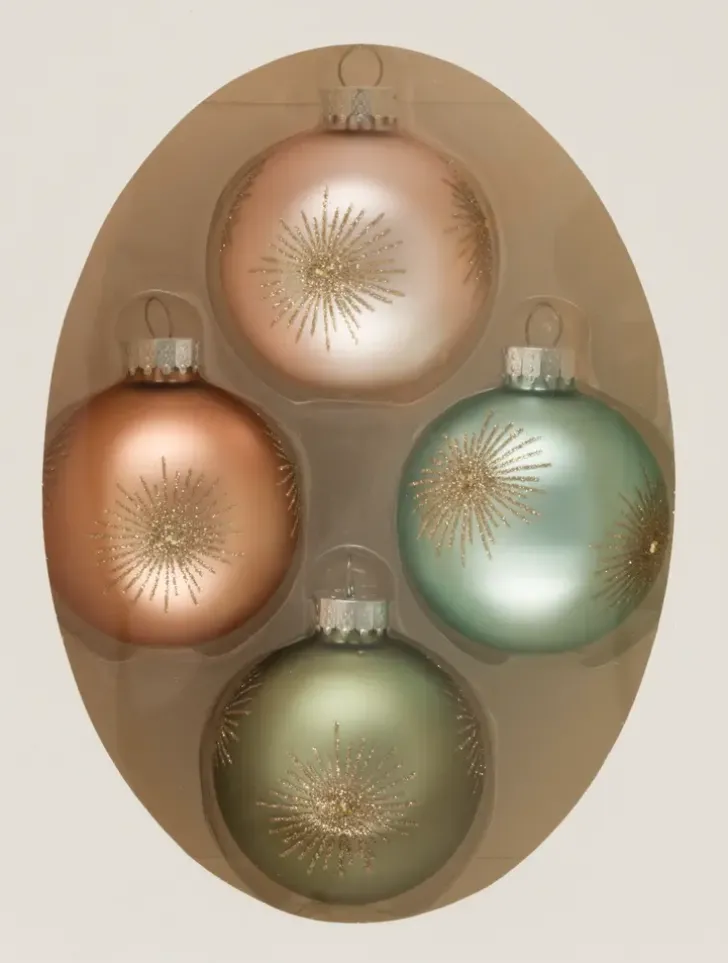 Joulupallo Lasia. Halkaisija 6,5 Cm. Pakkaus Sisältää 4 Kpl.