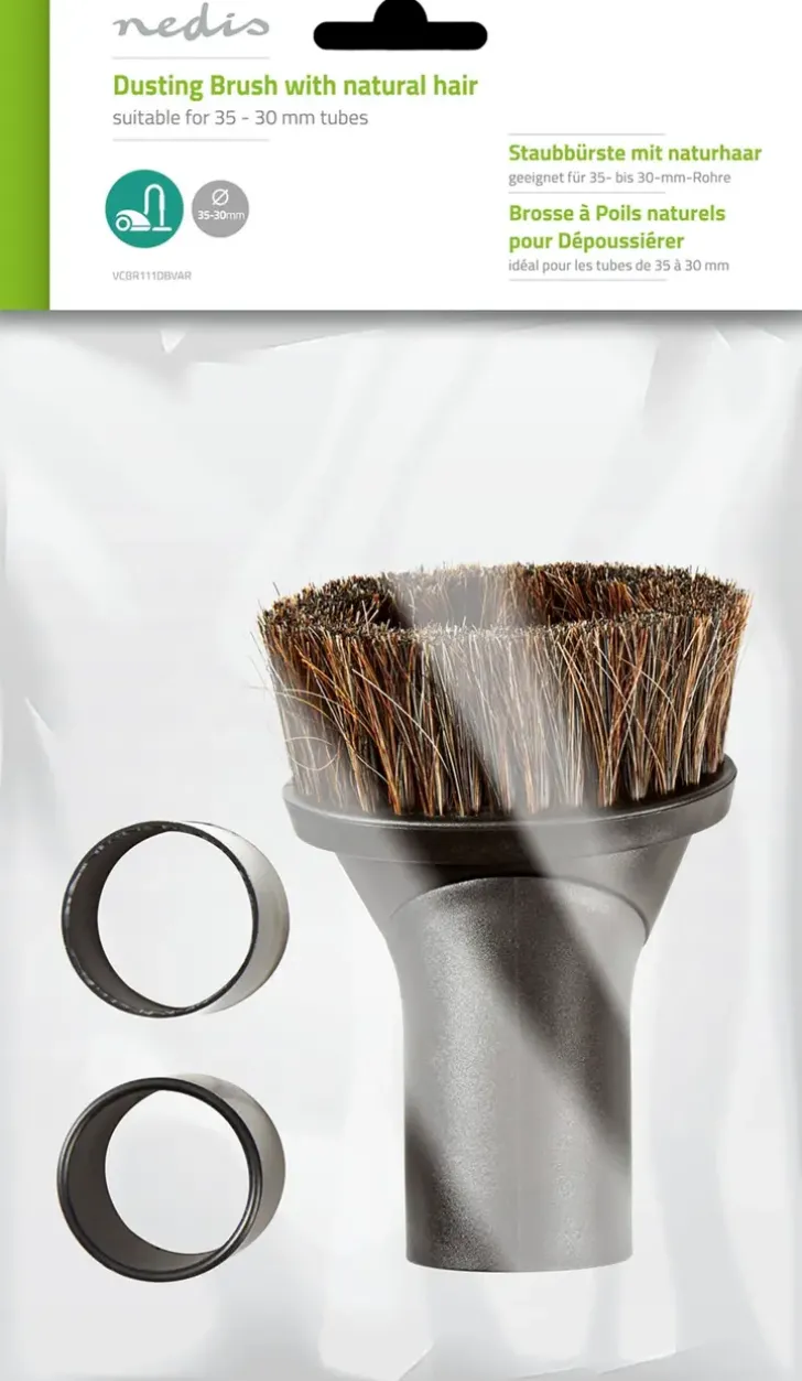 Tämä Pölyharjasuulake Säätyvällä Putkikoolla 35 – 30 Mm Sopeutuu Vaivattomasti Eri Pinnoille. Harjassa On Luonnonharjakset, Ja Se On Ihanteellinen Arvokkaiden Huonekalujen Ja Naarmuherkkien Esineiden Imurointiin. Voit Helposti Liittää Suulakkeen Kotipölynimureihin Käyttämällä Mukana Tulevia Sovitinrenkaita.