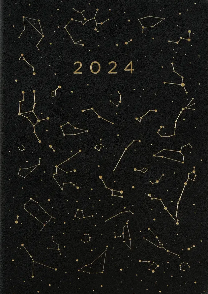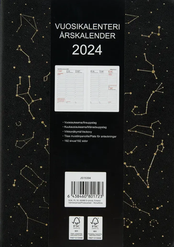 Vuosikalenteri Kirjanmerkkinauhalla. Kannessa Tyylikäs Tähtikartta. Koko: A5. Kielisyys: Suomi, Ruotsi. 192 Sivua.