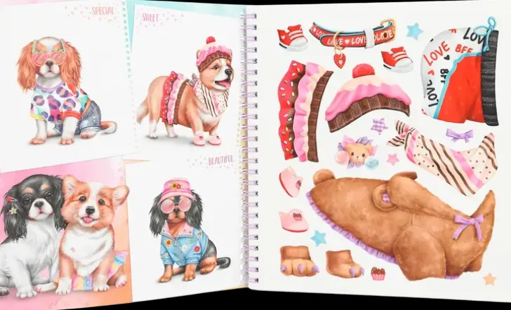 Suunnittele Ja Väritä Suloisille Koirille Uniikit Asut! Kirjan Mukana Saat Ihania Tarroja, Joilla Voit Antaa Työllesi Upean Loppusilauksen.