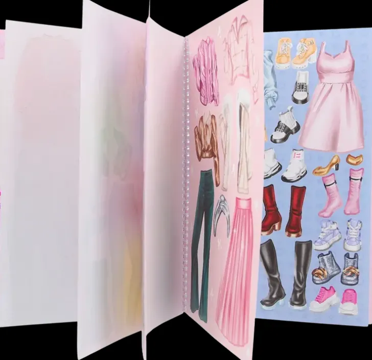 Pue Topmodel Dress Me Up Tarrakirjan Sivuilla Esiintyville Malleille Trendikkäät Asukokonaisuudet Värittäen Ja Mukana Tulevia Kauniita Tarroja Käyttäen.