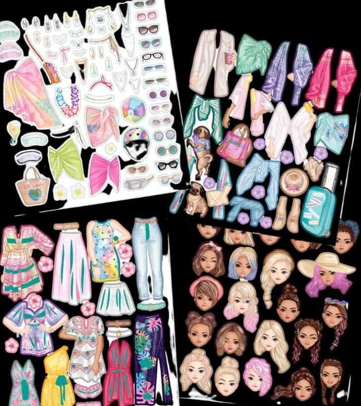 Suunnittele Trendikkäitä Asuja Topmodel Dress Me Up -Tarrakirjan Useille Sivuille Mukana Tulevia Tarroja Käyttäen! Mukana Jopa 11 Arkkia Ihania Tarroja. Hauskaa Tekemistä Esimerkiksi Pitkille Auto-, Juna-, Tai Lentomatkoille!