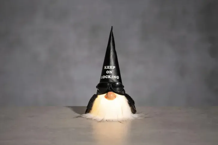 Rokkihenkisen Tontun Valkoisen Parran Valaisee Lämmin Valkoinen Led-Valo. Automaattinen Ajastintoiminto 6H On/18H Off. Paristo 3 X Lr44 1,5V (Sisältyy).